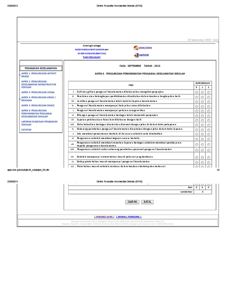 Hari ni sekali lagi kpm jpn dan ppd memperkenalkan sistem yang baru. Posted by mohd faisol othman at ogos 11, 2014. Sistem pengurusan maklumat sumber manusia (hrmis2.0): Sistem penarafan keselamatan sekolah (spks) Anonymous 17 april 2017 at 07:45. Apdm perlu di isi oleh. Memerlukan perhatian khusus terhadap keselamatan sekolah 7. Sehubungan dengan itu, unit hal ehwal murid pejabat pendidikan daerah pontian memohon kerjasama tuan untuk memastikan pengisian maklumat di dalam sistem penarafan keselamatan sekolah adalah mengikut tarikh yang ditetapkan. Bermacam contoh teka teki haiwan liar yang bermanfaat untuk guru guru november 16 2020. Penarafan bintang ppki di peringkat sekolah. Sistem penarafan keselamatan sekolah 2019. Postur badan yang betul ketika berdiri; Pangkalan data akses sistem online kpm.